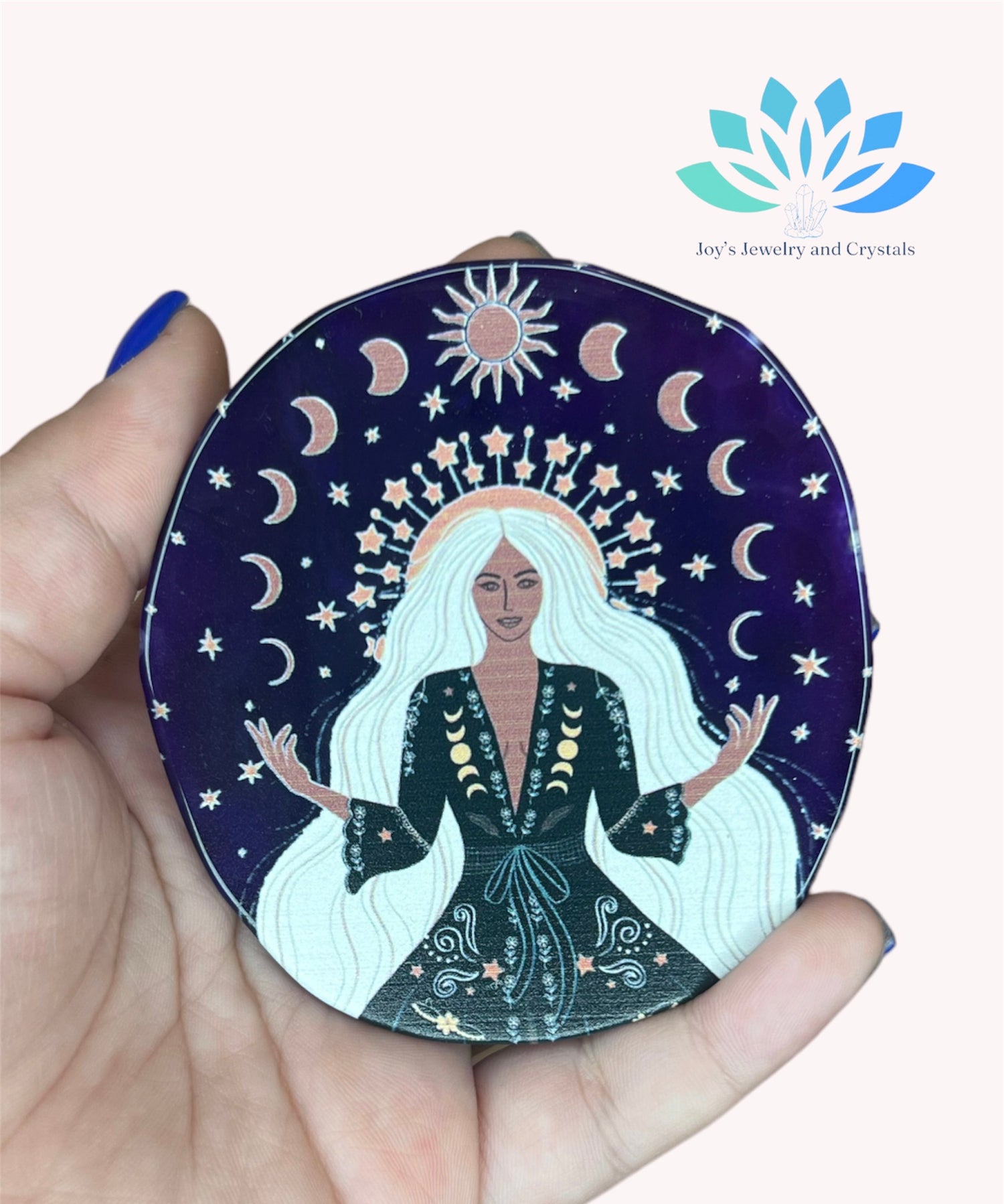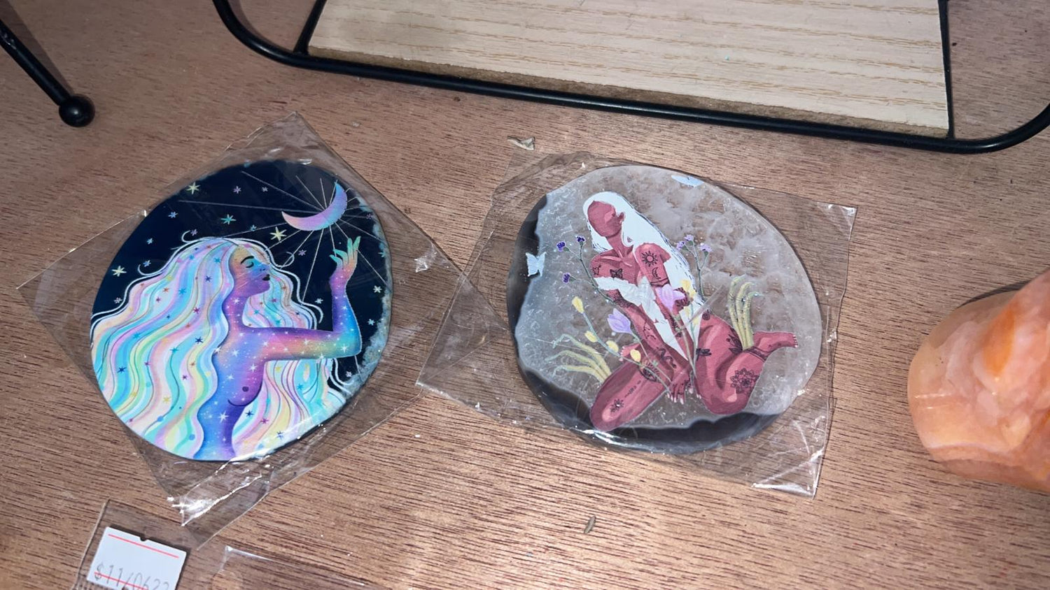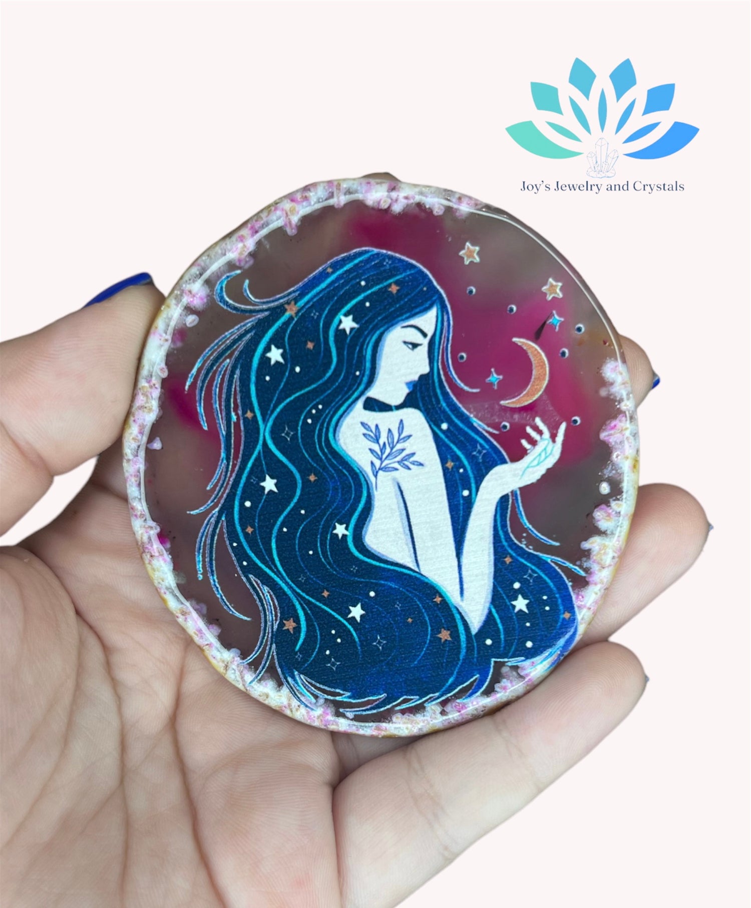 Esta es una hermosa losa de ágata tratada que incluye un soporte acrílico. Perfecto para darle ese aire chic a tu ambiente.