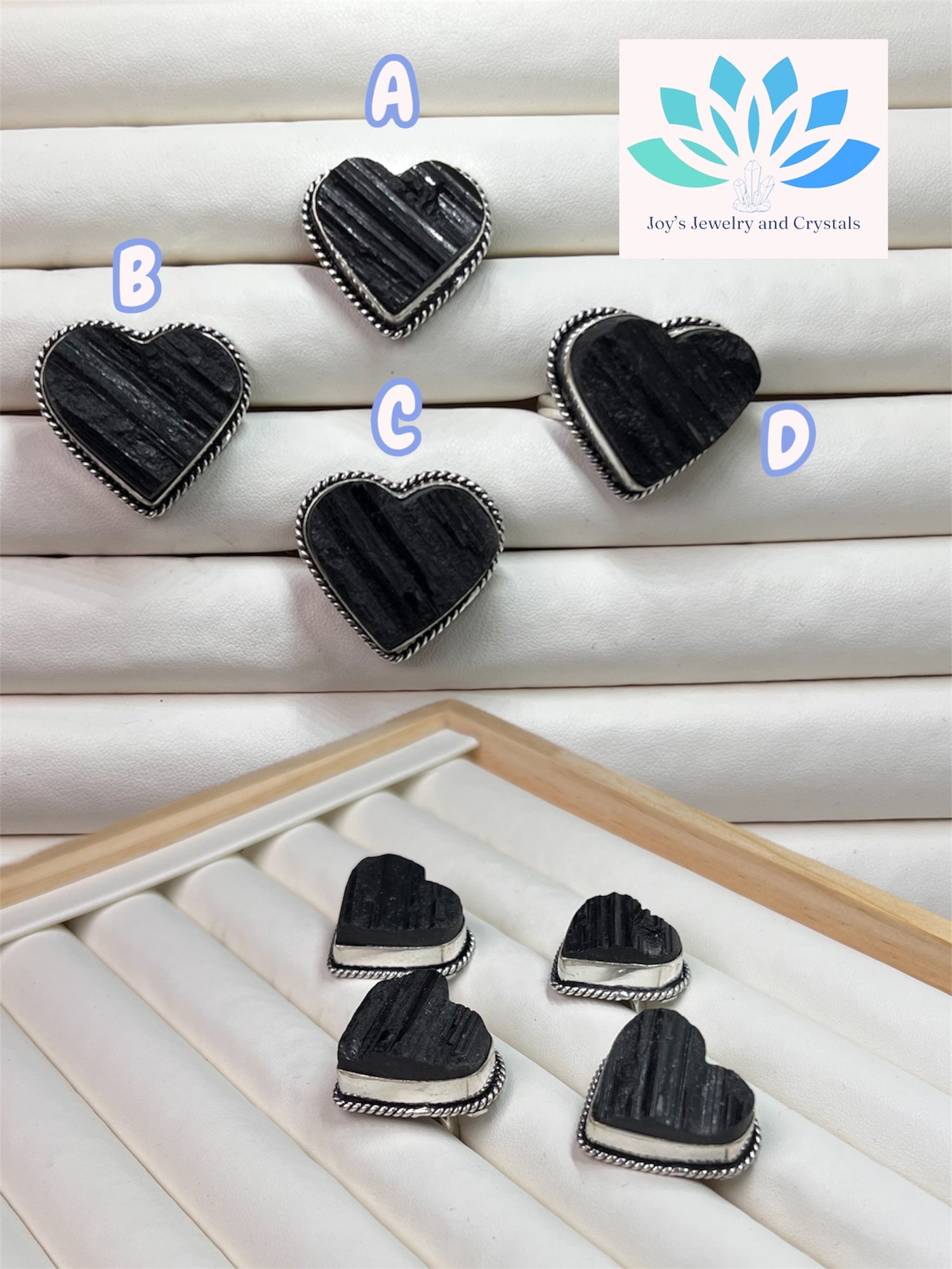 This funky adjustable ring is crafted from 925 silver and features a gorgeous black tourmaline stone.