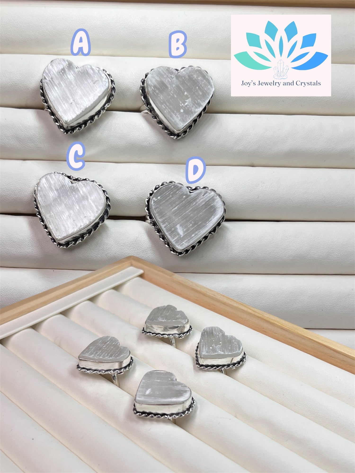 Selenite Adjustable Heart Rings (S925)