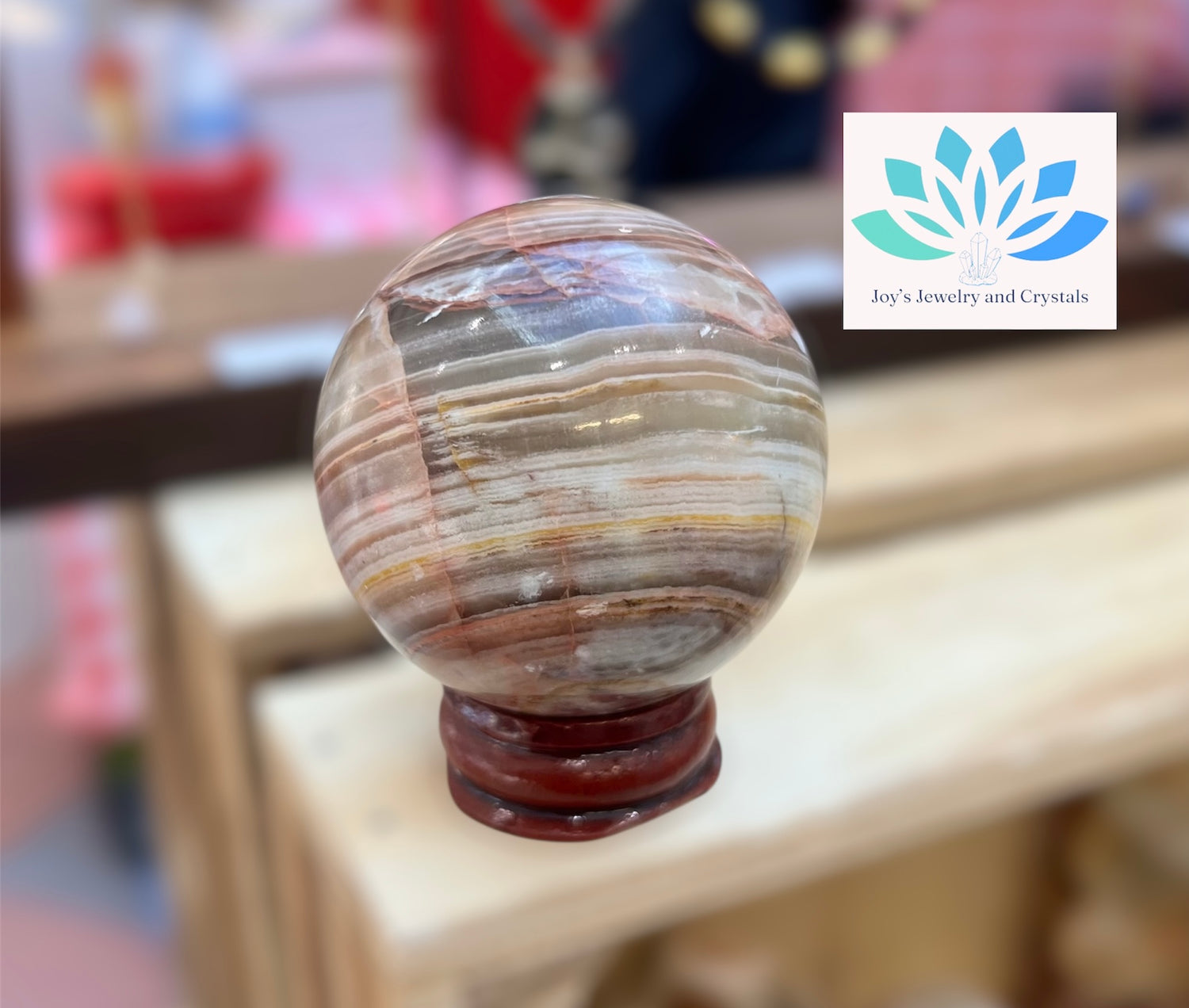 Experience the natural beauty and energy of the Onyx Calcite Sphere from Pakistan! This unique sphere is crafted from high-quality Onyx Calcite. Its smooth, polished surface and beautiful patterns make it a stunning addition to any space. Feel the positive vibrations and tap into its potential benefits for your mind, body, and spirit. Transform your environment and elevate your well-being with this powerful sphere.