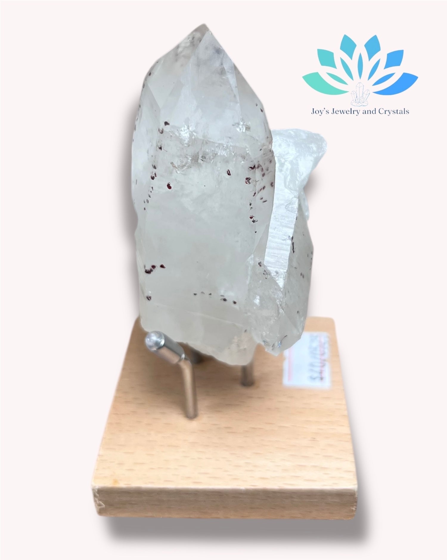 Clear Quartz with Hematite in Stand is the perfect addition to your collection. It's made with a high level of quality and is carefully crafted to showcase the exceptional clarity and unique inclusions of the quartz. You'll love the versatility of displaying it on the stand, making it an eye-catching piece for any room.
